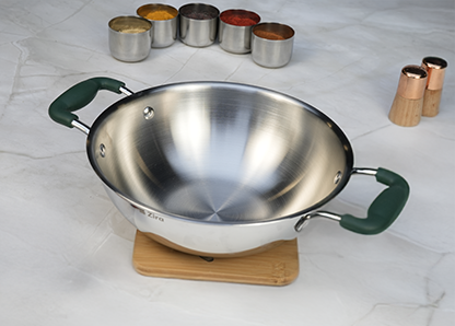 Food-grade 18/8 stainless steel provides a non-reactive, hygienic, and easy-to-clean cooking surface perfect for all types of dishes.