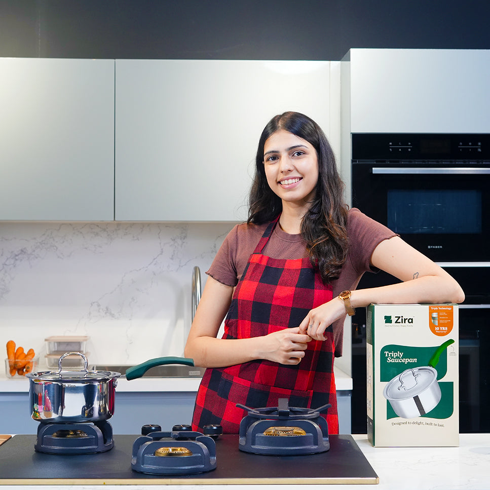 Zira cookware is crafted with triply technology and comes with India’s first Patented Silicone Stay-Cool Handles. All products carry the ISI mark, ensuring premium quality and safety.