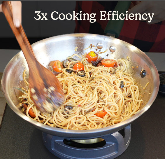 Heats 20–30% faster, cooks on low flame