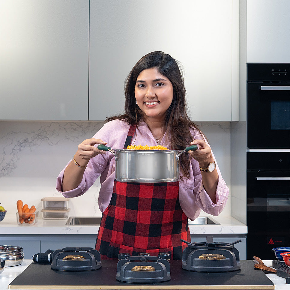 When there’s biryani or curry to be made for guests, the Zira Triply Stainless Steel Casserole is ready. Deep walls and triply construction help lock in flavors and warmth, making every daawat special.